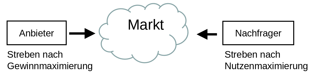 Der Markt ist der Ort, an dem Angebot und Nachfrage nach bestimmten Gütern aufeinandertreffen und derern Preis ermittelt wird.
