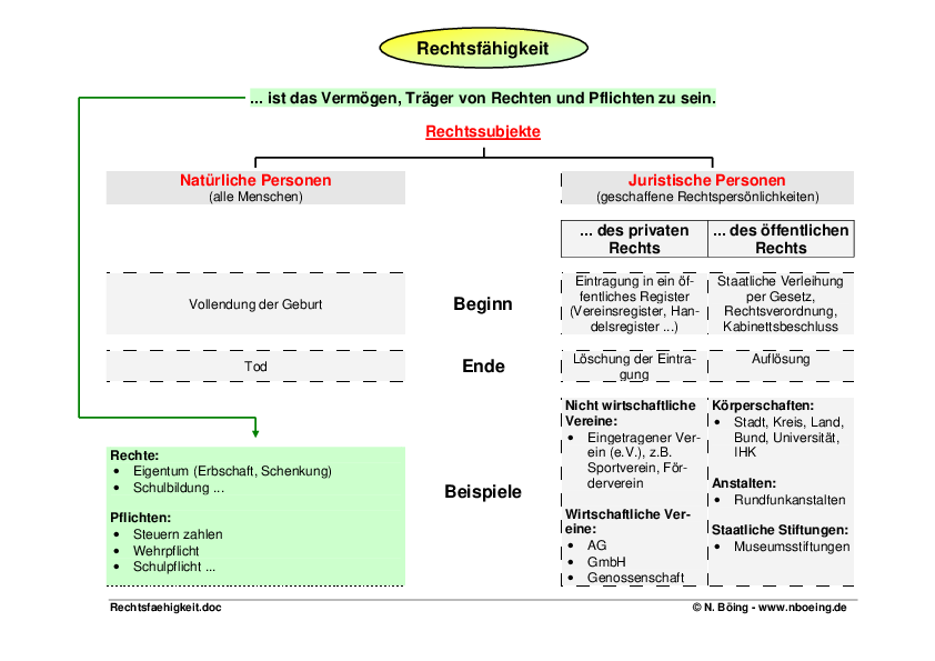 Die Rechtsfähigkeit ist die Fähigkeit ein Träger von Rechten und Pflichten zu sein. Alle natürlichen und juristischen Personen sind rechtsfähig.